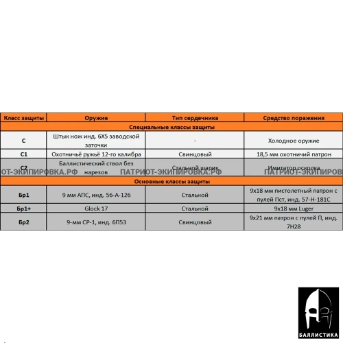 • Непробитие 50% стальными шариками 6,35 мм на скорости 615,5 м/с для Бр1, 658 м/с для Бр1+ и 730,9 м/с для Бр2 (имитация осколков).
