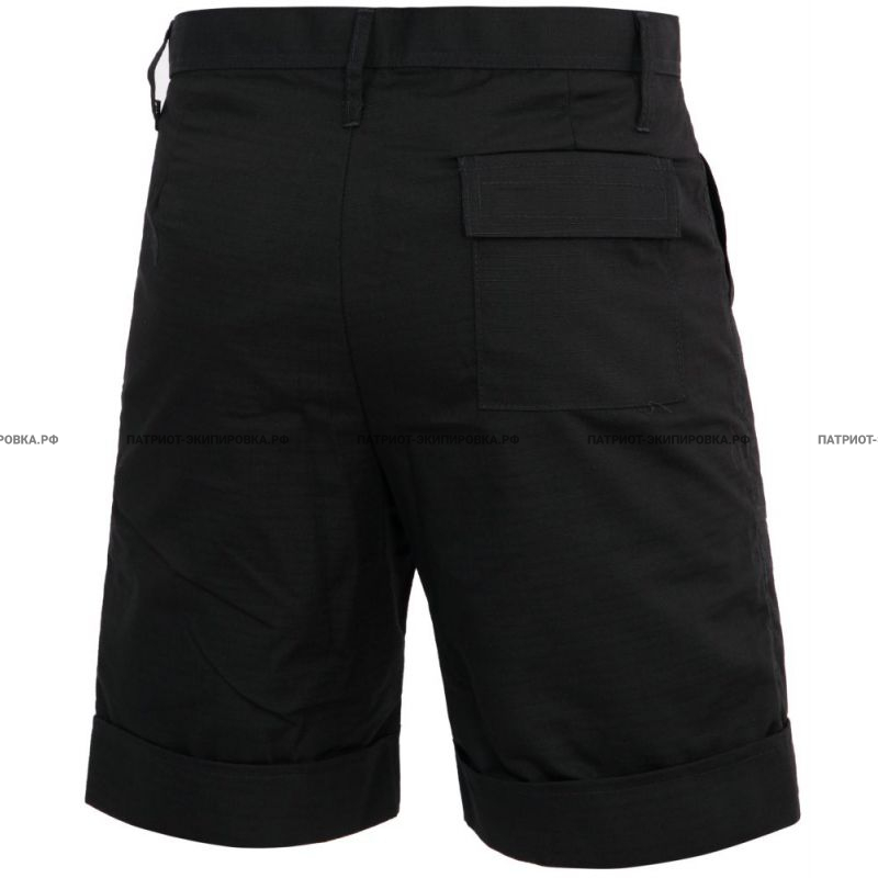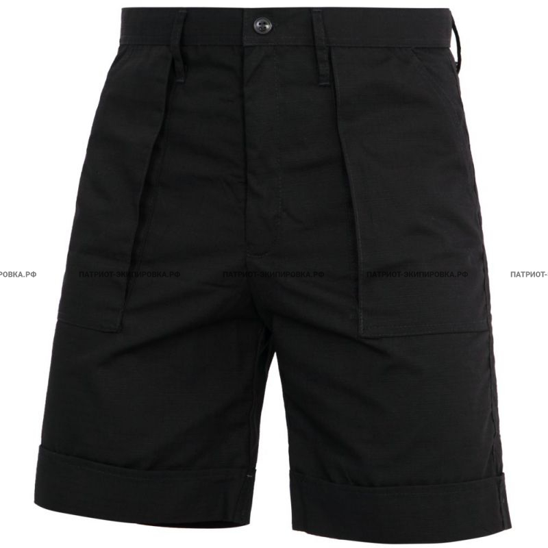 Шорты прямого силуэта с широким поясом и шлевками для ремня. Карманы накладные: два передних и один задний. Гульфик на молнии, на поясе застежка на пуговицу.