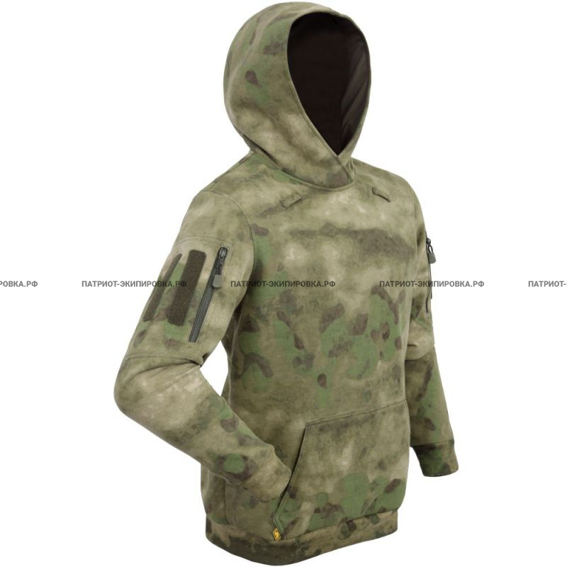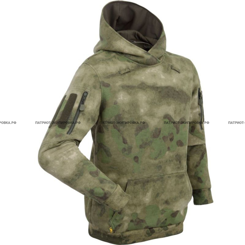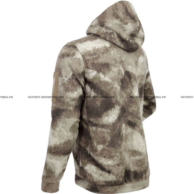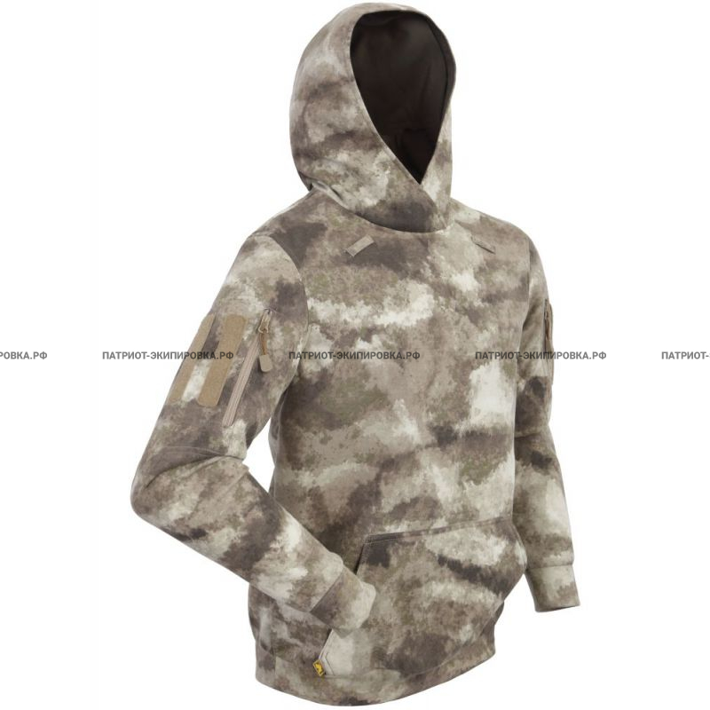 Особенности: Выполнена из оригинального материала A-TACS. Состав: 60ПЭ / 40%ХЛ. Прорезные карманы на молнии на рукавах. 2 Узкие липучки на рукавах для крепления знаков различия. Капюшон внутри имеет трикотажную подкладку. В передней части имеется объемный накладной карман без разделителя.