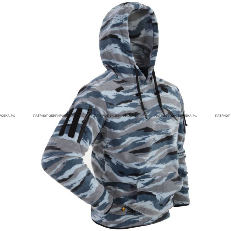 Особенности: Прорезные карманы на молнии на рукавах. 2 Узкие липучки на рукавах для крепления знаков различия. Капюшон внутри имеет трикотажную подкладку. В передней части имеется объемный накладной карман без разделителя.