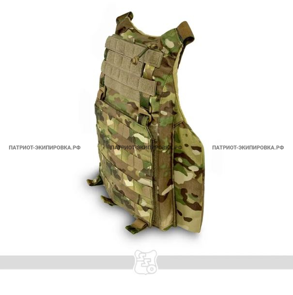 Он вынесен относительно основного кармана под баллистическую защиту, тем самым выполняет роль навесного плитника поверх противоосколочной жилетки.